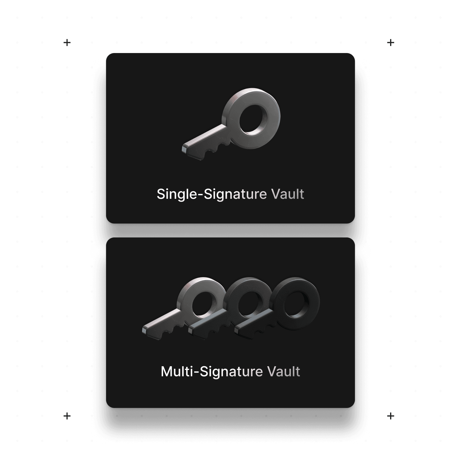 Choose from multiple vault types. Whether youโre solo, managing with a partner, or part of a larger team. Our modular architecture adapts to your security needs.